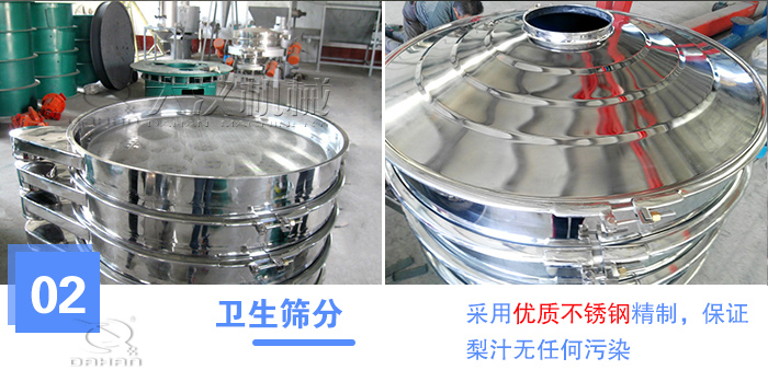 不锈钢丝瓜视频黄片地址的筛分精度非常高,细可达0.028mm(500目),适用于各种液体和超微细粉末的筛分,可以保证梨汁的精准筛分、过滤、除杂,同时筛网可以安装1-5层,筛分出六种不同粒度规格的的梨汁,保证了梨汁的口感,能够适用于客户不同的需求,功能非常强大。