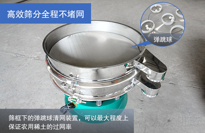 圆形丝瓜视频黄片地址通过振动电机上两端的偏心块将筛机运动转化为三元运动对农用稀土进行高效筛分,再加上筛框下的弹跳球清网装置,可以很大程度上保证农用稀土的过网率,高效筛分全程不堵网。