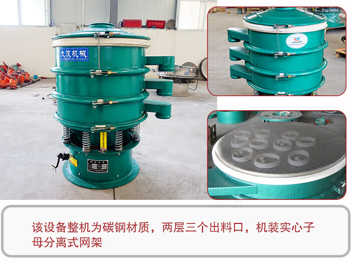 该丝瓜污污视频官网整机为碳钢材质,两层三个出料口,机装实心子母分离式网架,归属于常见的轻型丝瓜视频黄片地址分丝瓜污污视频官网,也就三次元丝瓜视频黄片地址,碳钢丝瓜视频黄片地址,本公司生产的DH系列丝瓜视频黄片地址可根据客户不同需求1-5层同时使用,产品型号齐全,可满足各种粉末、颗粒筛分需要求及液体过滤需求,也可设计为超声波丝瓜视频黄片地址粉机、气流丝瓜视频黄片地址粉机、丝瓜视频黄片地址粉机等机型。食品行业多多采用SUS304不锈钢,对卫生级别要求不高多采用Q235A碳钢作为主要材质。