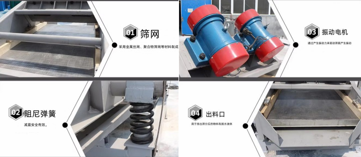 5、出料口:出料口位于筛箱底部,用于排出筛分后的物料和脱水液体。