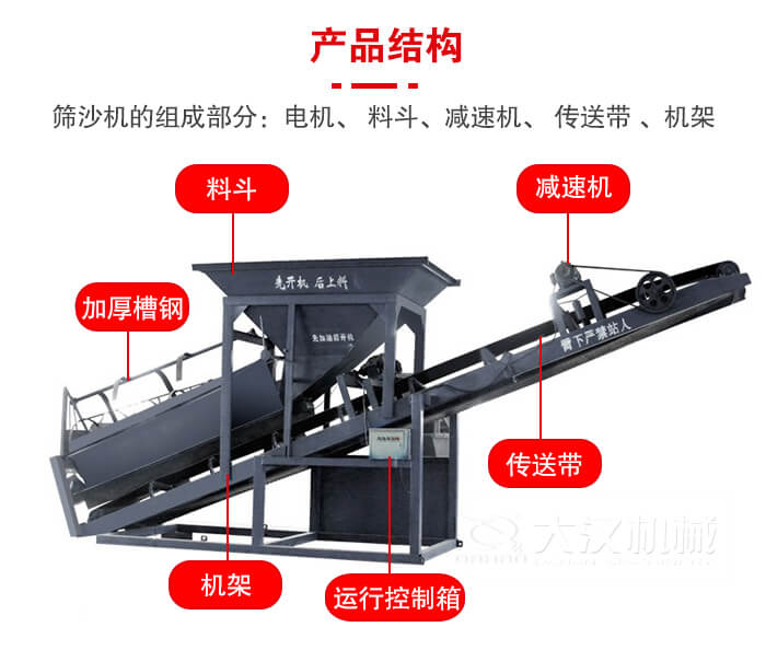 筛沙机(筛沙船)的组成部分:电机、 料斗、减速机、 传送带 、机架、 转筛、 传送杆 。