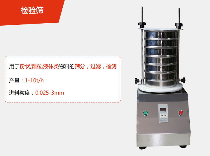 检验筛是一种小型的针对于实验室,化验室,物品筛分等使用。比较适合颗粒状,粉状物料的粒度结构,液体类固体物含量及杂物量的筛分,过滤,检测该系列的产品对于物料筛分的要求并不是很高。