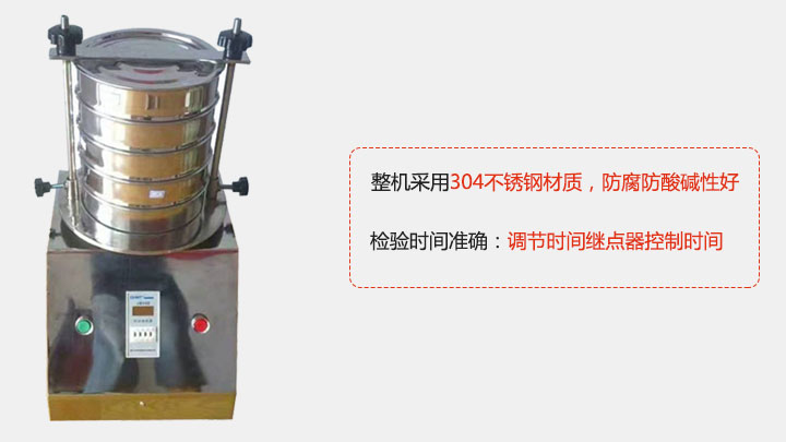 3,检验筛整机采用304不锈钢材料,该材质针对于腐蚀酸碱物料的筛分并能保证其使用寿命。