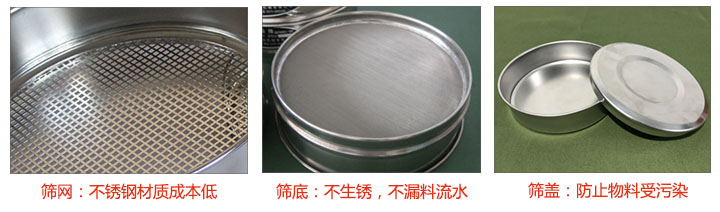 检验筛是由筛网、筛框、筛盖、筛底精制而成。