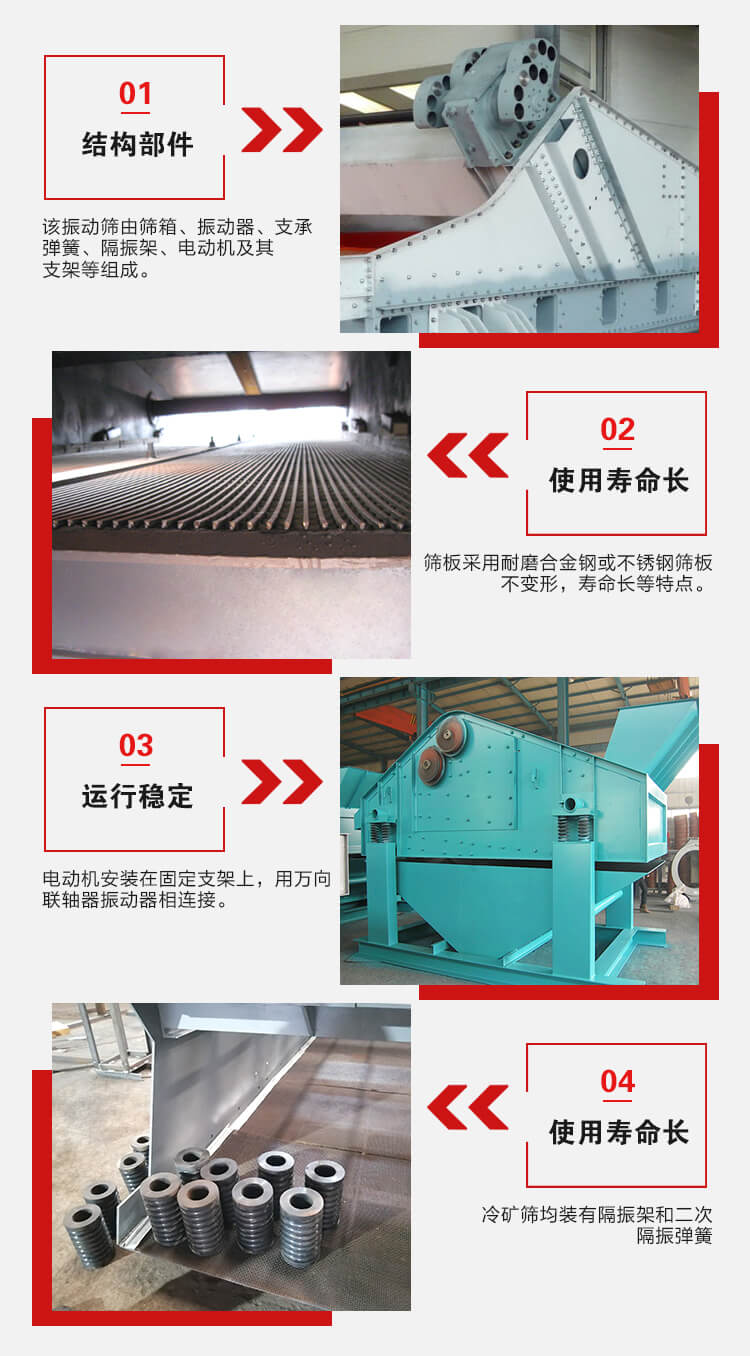 ZSL系列大型冷矿筛均装有隔振架和二次隔振弹簧。