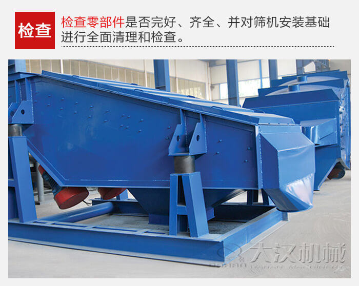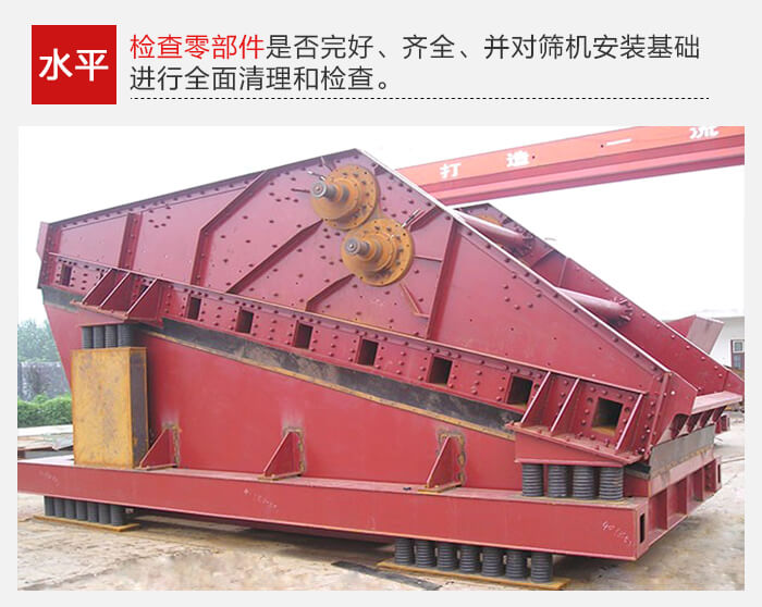 要检查零部件是否完好、齐全、并对筛机安装基础进行全面清理和检查。