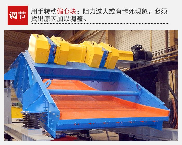 振动器装配完毕后,用手转动偏心块,如阻力过大或有卡死现象,必须找出原因加以调整。