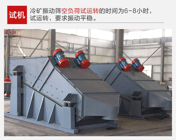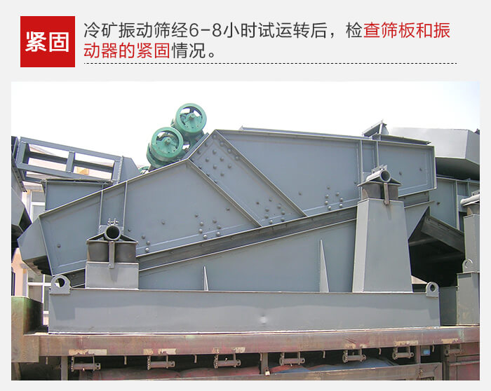 冷矿丝瓜视频黄片地址经6-8小时试运转后,应检查筛板和振动器的紧固情况,如发现松动应及时拧紧,振动器轴承工作温度应75℃。
