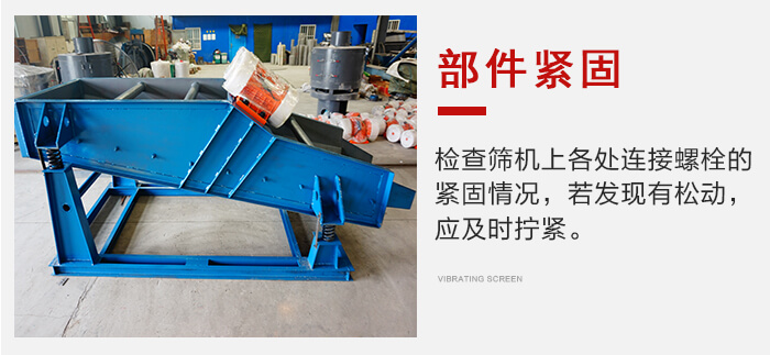 应经常检查筛机上各处连接螺栓的紧固情况,若发现有松动,应及时拧紧。