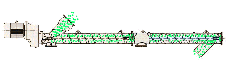 2、物料进入:物料从进料口进入输送机,被螺旋叶片推动沿着螺旋槽向前输送。